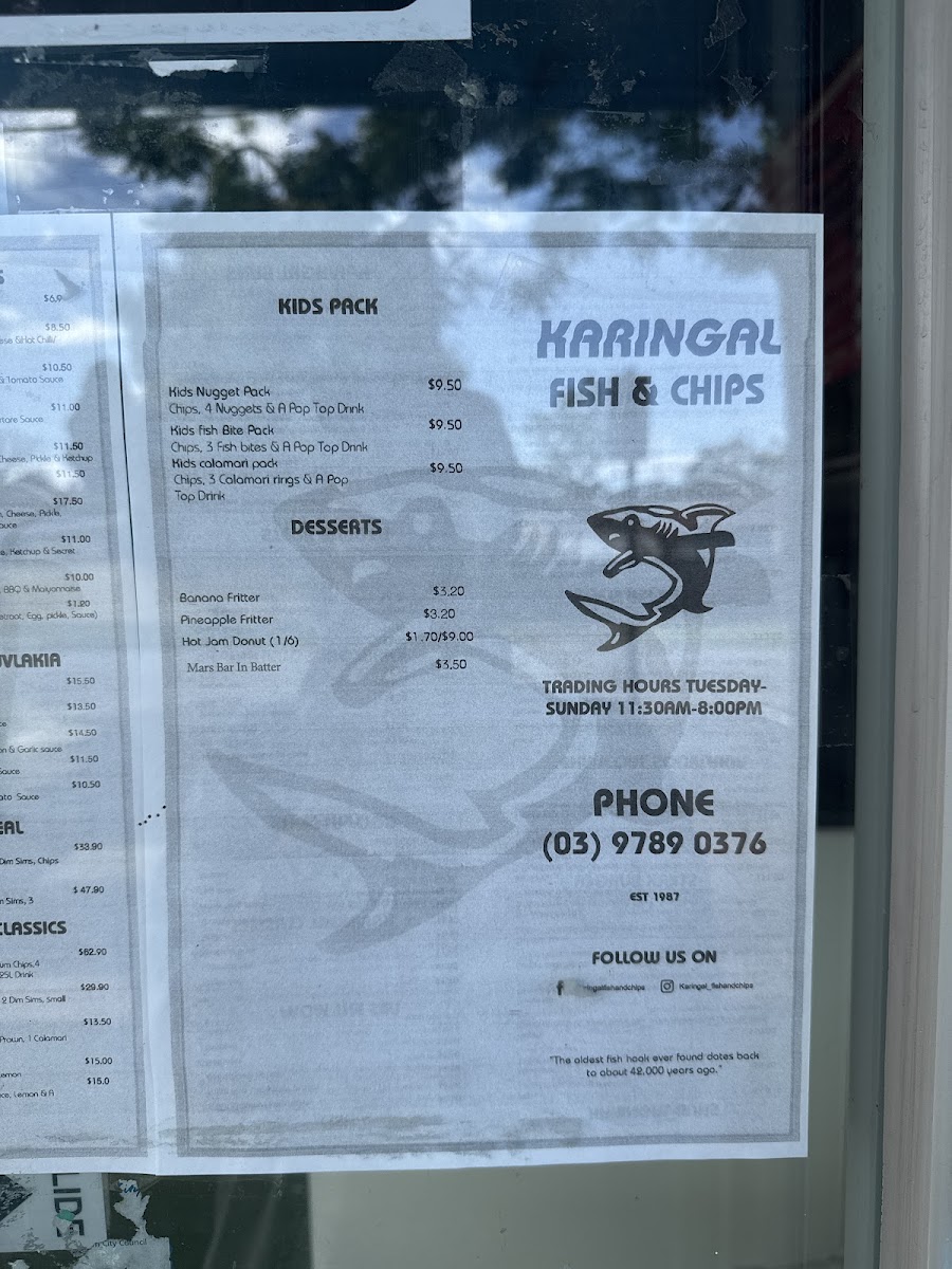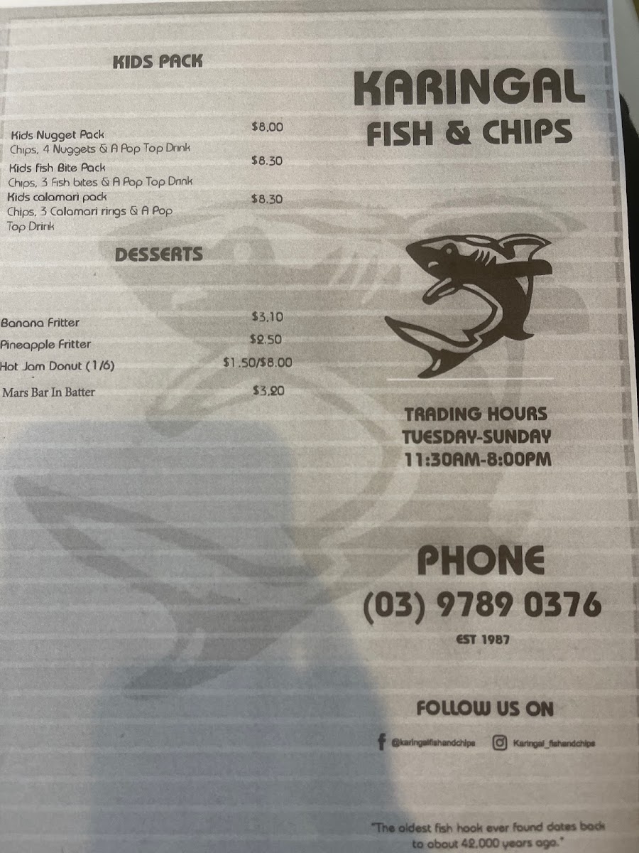 Karingal Fish and Chip Menu